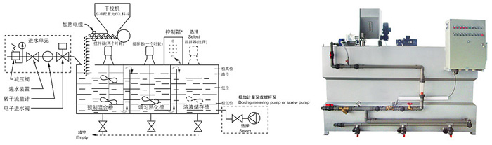 也有分批制備和投加功能的二槽式機型,或半自動制備系統,簡易型溶液藥裝置。